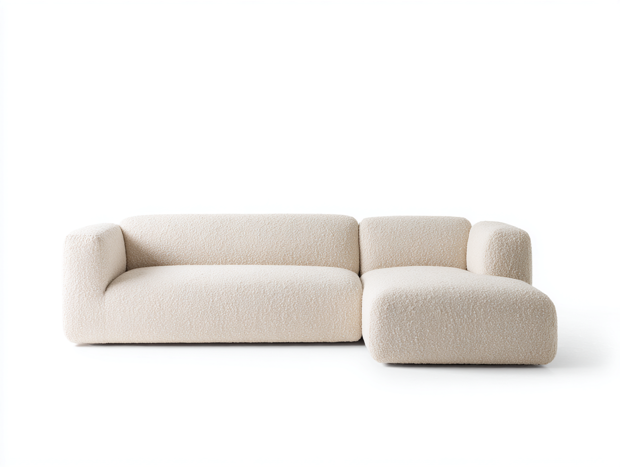 Canapé d’angle minimaliste adapté aux intérieurs sobres et lumineux.