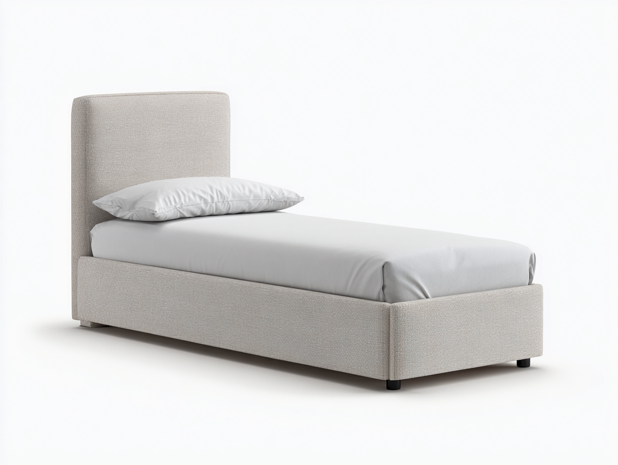 Lit simple minimaliste conçu pour une chambre sobre et fonctionnelle.